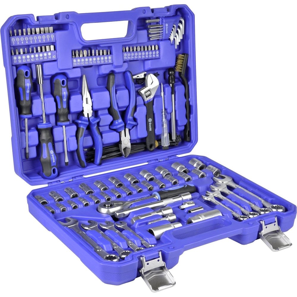 Набор инструментов выполнен из специальной комплексно легированной стали с повышенным содержанием углерода. Прочные металлические замки и эргономичный ударопрочный кейс делают набор головок с трещоткой эффективным и мобильным. Благодаря удачно подобранной комплектации набор подойдет для большого количества различных задач, существенно снижает зависимость от стороннего инструмента и позволяет эффективно работать, не прибегая к дополнительным комплектам.