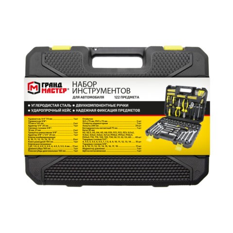 Набор инструментов для автомобиля, 122 предмета, пластиковый кейс, ГРАНДМАСТЕР, 671335