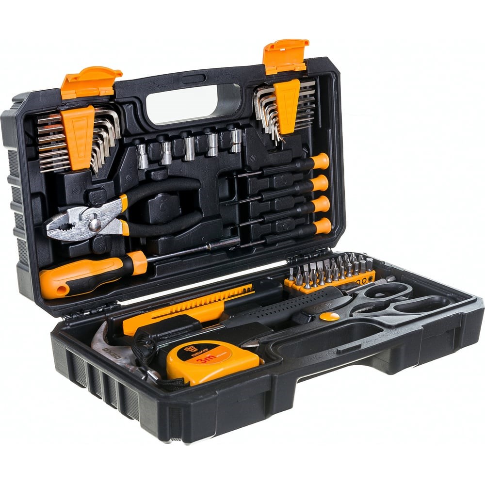 Набор инструментов для дома DEKO PRO DKMT62 065-0213 включает в состав оборудование, выполненное из высокопрочной стали, которая прошла дополнительную закалку и специальную обработку. Это защищает инструмент от коррозии, а также делает его более устойчив к любым физическим деформациям. Комплект также оснащен ключами HEX дюймовой и метрической размерностей. Это позволяет быстро собрать и разобрать небольшие элементы электроники или выполнить монтаж электросистемы. Преимущество кейса для транспортировки инструмента заключается в его прочности и наличии индивидуальной позиции для хранения каждого элемента набора в отдельности. Это существенно повышает удобство использования и упрощает поиск и подбор подходящего инструмента или оснастки.
