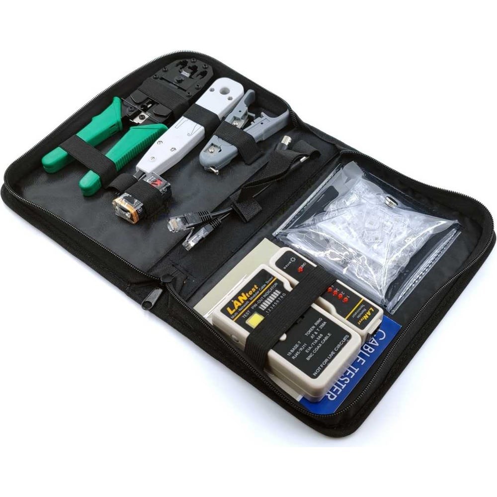 Набор инструментов для СКС 5bites TK031 в портмоне содержит основные инструменты для монтажа СКС и способен значительно облегчить работу, начиная от обжима разъемов RJ45/11/12 до тестирования кабельных сегментов сети и забивки/заделки проводников во врезные контакты KRONE. Набор подходит для профессионального использования. Поставляется в удобном чехле-портмоне для комфортной переноски и хранения.