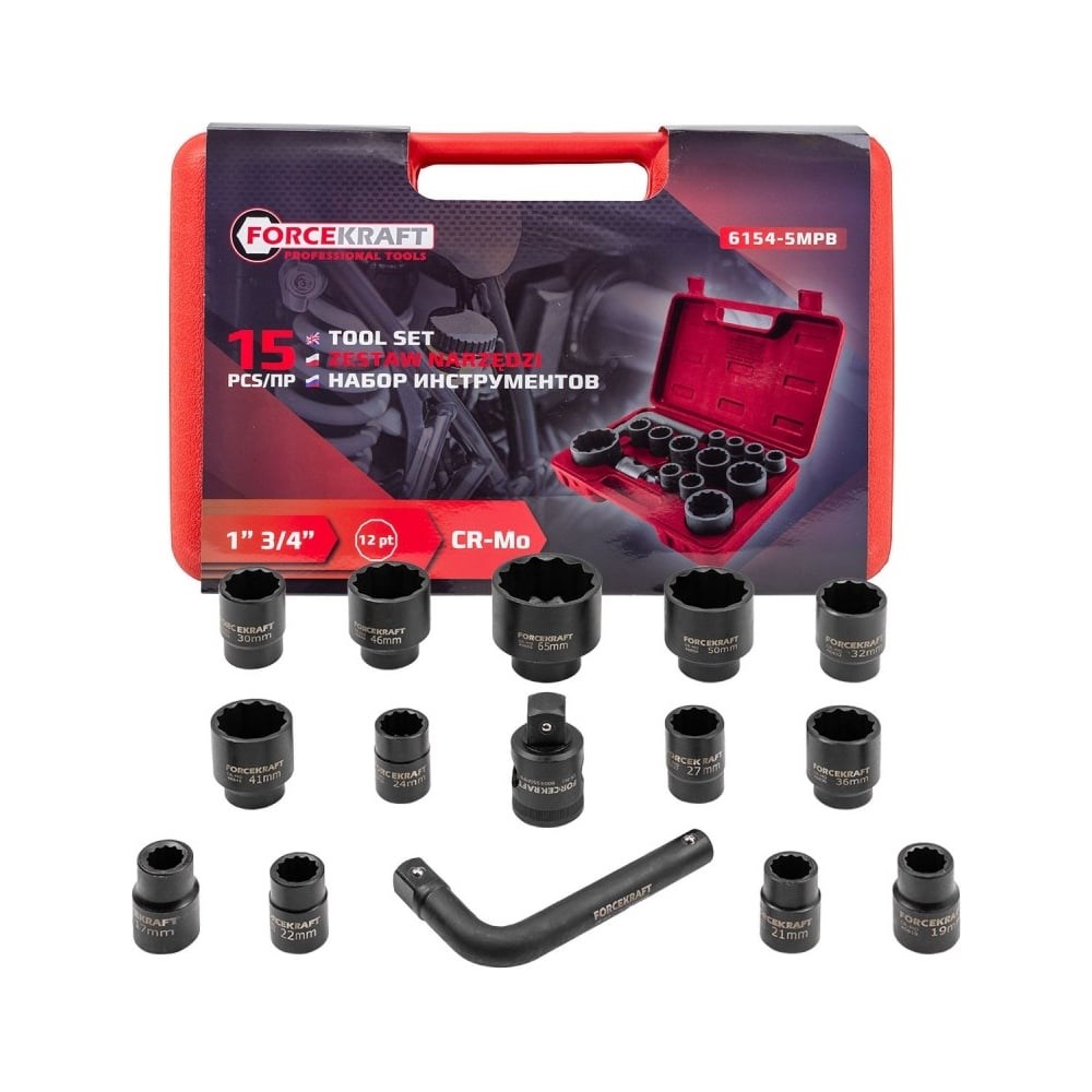 Набор торцевых головок ударного типа от бренда Forcekraft , состоящий из 15 предметов. Этот набор предназначен для эффективного ремонта грузовых и легковых автомобилей, монтажа строительных конструкций и решения других сложных задач. Он станет незаменимым помощником в любой мастерской, на стройке или в гараже.Высокая прочность и надежность: Головки изготовлены из хром-молибденового сплава (CR-MO), что обеспечивает исключительную прочность и устойчивость к высоким ударным нагрузкам. Этот материал гарантирует стабильное закручивание и откручивание крепежных элементов даже в самых экстремальных условиях.Широкий ассортимент размеров: Комплект включает 12-гранные торцевые головки с посадочным квадратом 3/4" (размеры от 17 мм до 50 мм), а также специальную головку 1" 12-гр. на 65 мм. Такой широкий выбор позволяет выполнять работы с различными типами крепежных элементов на любом оборудовании.Удобство использования: В набор также входит Г-образный вороток и соединитель, которые обеспечивают легкий доступ к труднодоступным местам. Все инструменты компактно размещены в прочном пластмассовом кейсе с надежными защелками. Вес комплекта составляет 7,75 кг, а размеры кейса — 39х24х9 см, что позволяет легко транспортировать и хранить инструменты.Комплект торцевых головок ударного типа из 15 предметов — надежность, которая всегда под рукой!