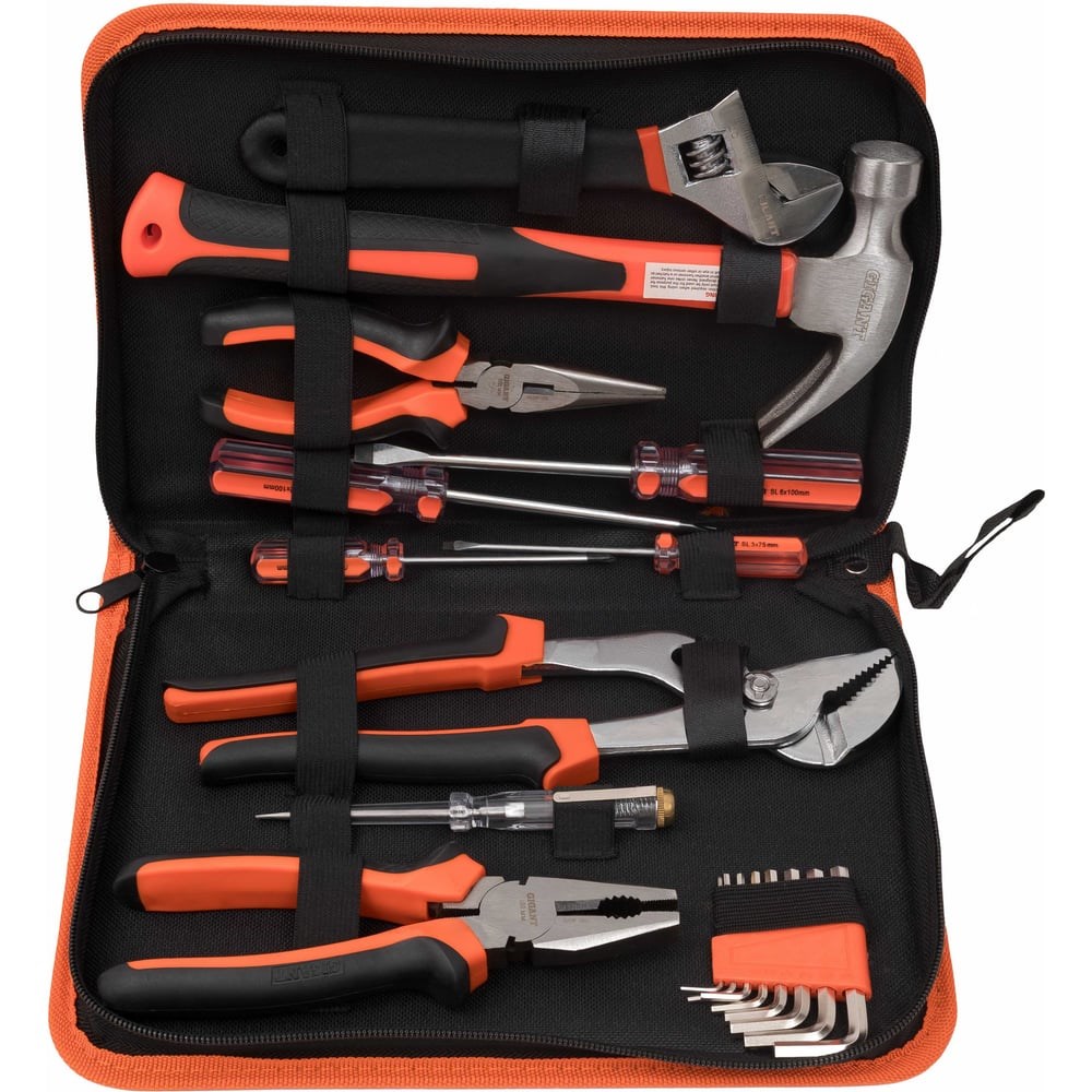 Набор инструментов 18шт Gigant GT-18 содержит весь необходимый инструмент для ремонтных, электромонтажных, сантехнических и слесарных работ, также он пригодится в частном строительстве, сборке мебели, обслуживании бытовой техники. Инструменты набора имеют удобные в обхвате двухкомпонентные рукоятки с антискользящими свойствами. Все элементы помещаются в компактную сумку, что облегчает их хранение и перевозку. Инструменты изготовлены из материалов высокого качества, двухкомпонентные рукоятки удобны в обхвате. Пластиковые элементы выполнены из противоударного ABS пластика. Gigant – собственная торговая марка компании ВсеИнструменты.ру, разработанная специально для требовательных мастеров. Продукция представлена профессиональными и бытовыми инструментами, имеет доступную цену и высокое качество. При изготовлении товаров Gigant используется современное оборудование и прочные материалы. Производство осуществляется на современных предприятиях России и Азии. Тестирование товаров осуществляется в два этапа, каждая партия инструментов проходит проверку на соответствие стандартам и заявленным техническим характеристикам. Это является залогом качества и надежности готового продукта. Продукция представлена широкой линейкой инструментов. У нас можно приобрести ручной инструмент, строительный, садовый, сантехнический, климатический, крепежный, автогаражный, а также станки, расходные материалы и многое другое.