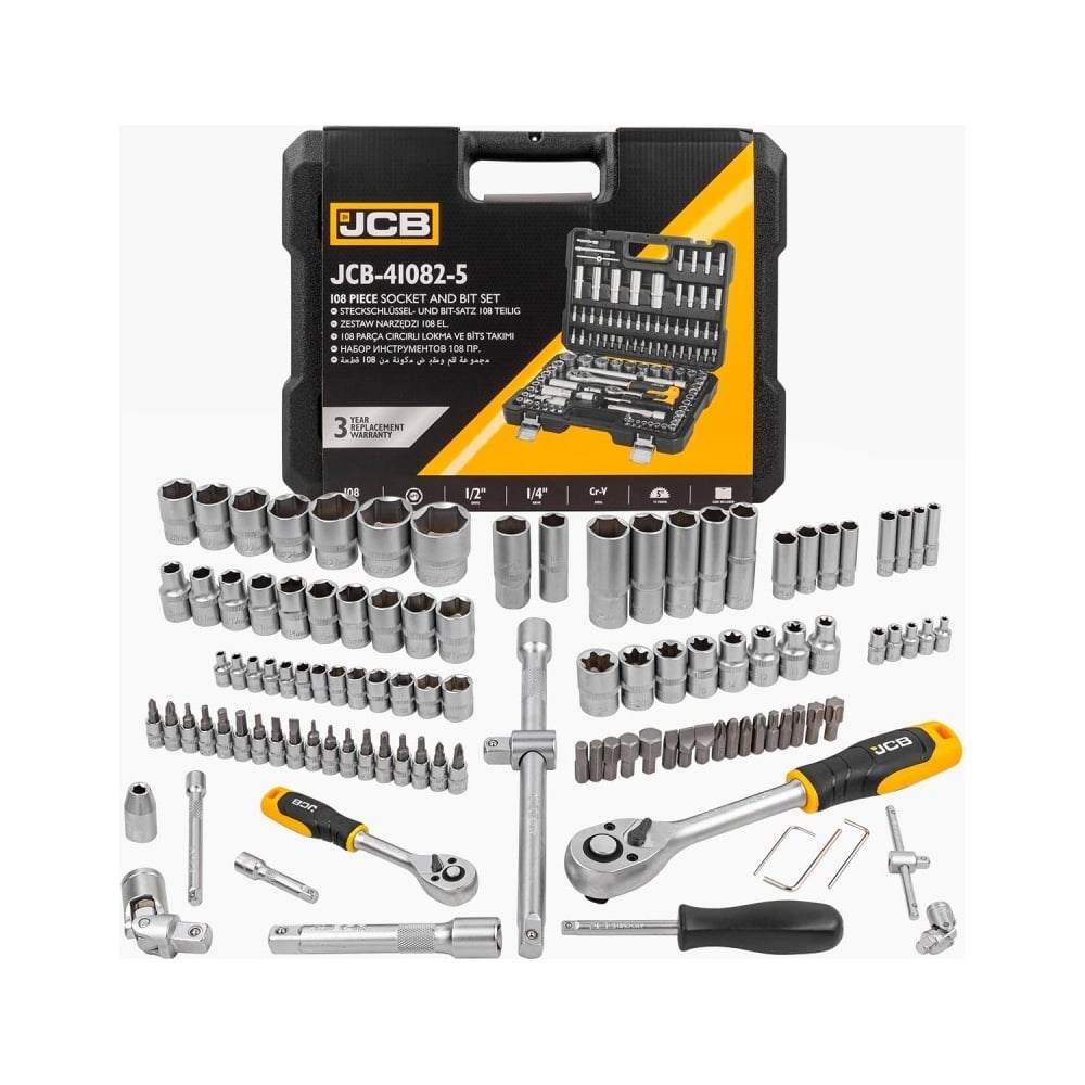 Набор инструментов JCB — это идеальный комплект для автолюбителей и профессионалов, который включает в себя 108 предметов премиум-класса. Он сочетает в себе функциональность, качество и удобство, что делает его незаменимым в любом гараже или на СТО.Ключевые характеристики:Разнообразие инструментов:Набор включает посадочные квадраты 1/2" и 1/4", а также широкий ассортимент головок: 6-гранные, Е-профиль, короткие и глубокие. Это позволяет работать с различными крепежными элементами и обеспечивает универсальность при ремонте.Комплектация:В наборе вы найдете:Головки 1/4" короткие (25 мм) и глубокие (50 мм)Головки 1/4" Е-профиль короткие (25 мм)Разнообразные бит и головки-битыТрещотку, рукоятку и Т-образный воротокУдлинители и кардан шарнирныйМногофункциональность:Благодаря широкому выбору инструментов, этот набор подходит для ремонта множества моделей автомобилей, а также для выполнения других задач в быту и на производстве.Удобство хранения:Все инструменты аккуратно размещены в стильном кейсе с металлическими защелками, который легко помещается в багажник автомобиля и удобно хранится на полке или в ящике. Кейс не только практичен, но и выглядит привлекательно.Качество материалов:Все инструменты изготовлены из хромованадиевой стали (CrV), что обеспечивает их долговечность, надежность и устойчивость к износу.Заключение: Набор инструментов JCB — это оптимальный выбор для тех, кто ценит высокое качество и удобство в работе. Он прекрасно подходит как для профессионалов, так и для любителей, обеспечивая надежное решение для автомобильного ремонта и других задач. Не упустите возможность улучшить свои рабочие процессы с этим многофункциональным набором!