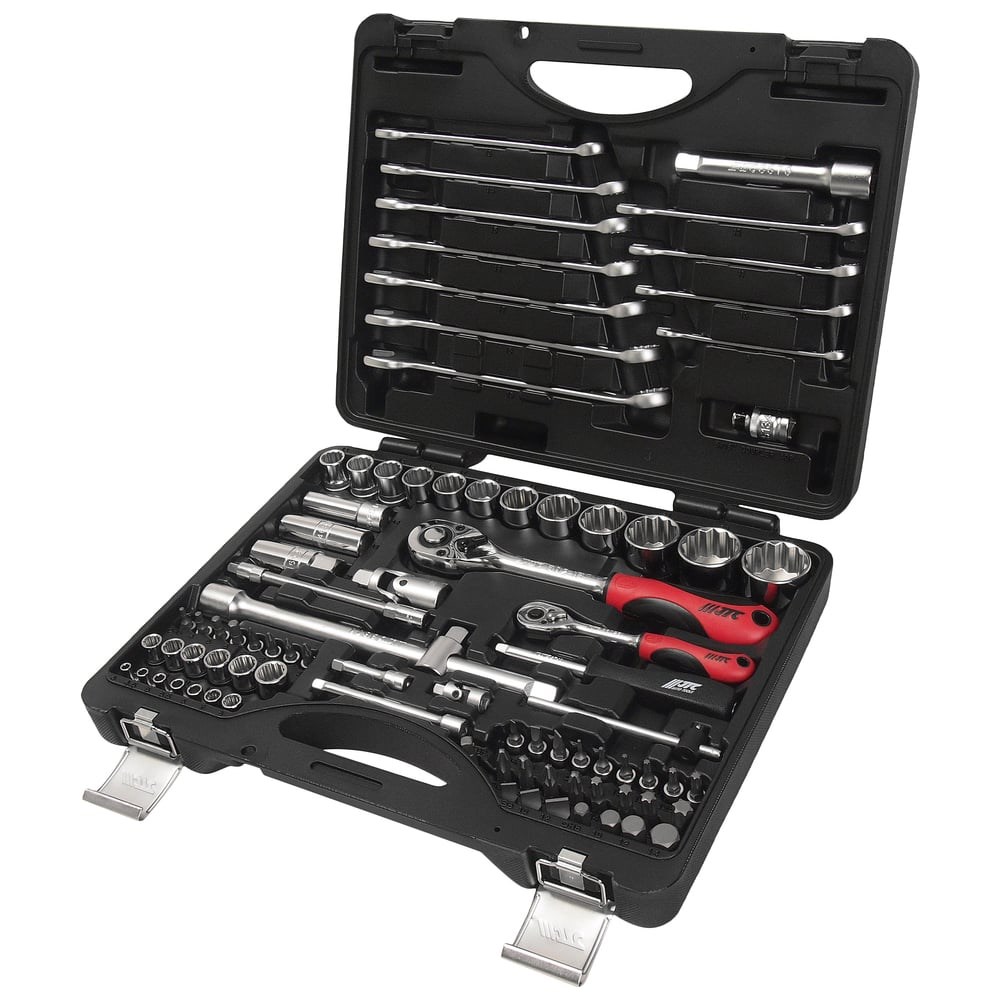 Набор инструментов 1/4 & 1/2 12-гранный в кейсе 85 предметов JTC /1/3-T085C-B72 представляется собой комплект шоферских принадлежностей для ремонта автомобиля. Рабочие части инструментов изготовлены из прочных и надежных материалов. Ручки изделий выполнены из двухкомпонентного материала, благодаря чему они не скользят в руке. В наборе 85 предметов.