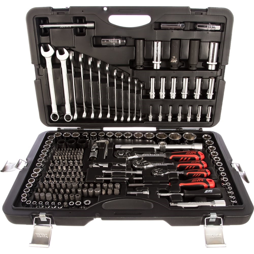 Набор инструментов 216 предметов JTC H216C-B72 охватывает большинство типовых размеров крепежа и позволяет работать с различным усилием за счет трех трещоток и большого количества переходников. Комплект инструмента подойдет для автомобилистов. Прочный кейс и удобное расположение элементов облегчает поиск. Биты расположены предельно компактно, что позволяет уменьшить общие размеры кейса. Имеется четыре металлических защелки для простоты и безопасности перевозки.