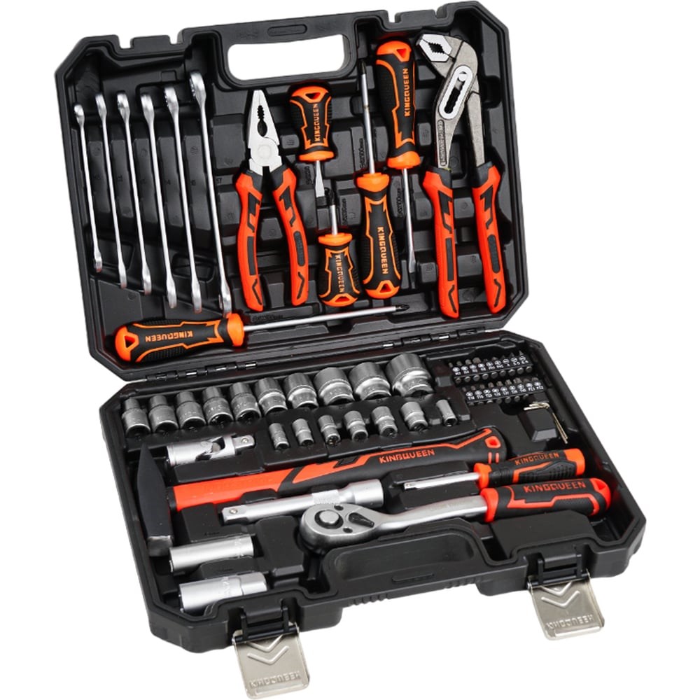 Набор инструментов KINGQUEEN 58 пред, 72 зуба - это многофункциональный комплект, который подойдет для монтажа, демонтажа резьбовых соединений, проведения ремонта и обслуживания автомобиля. Рабочие части инструментов изготовлены из хромованадиевой стали и оснащены рукоятками. Прочный и компактный кейс с металлическими защелками увеличивает срок службы набора.