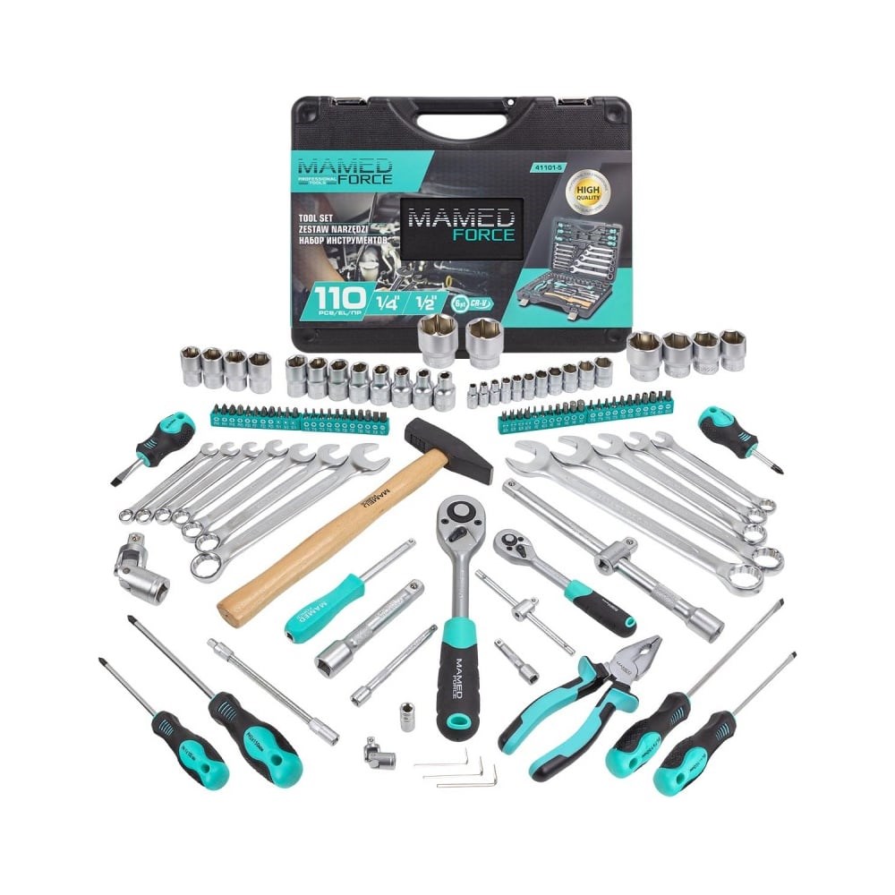Набор автомобильных инструментов MAMEDFORCE состоит из 110 предметов и предназначен для выполнения большинства ремонтных работ. С двумя посадочными квадратами 1/4" и 1/2", этот набор включает в себя все необходимые инструменты для различных типов ремонта автомобиля.Основные характеристики:Количество предметов: 110Посадочные квадраты: 1/4" и 1/2"Применение: Идеален для ремонта свечей зажигания, тормозов и обслуживания двигателя. Подходит для большинства механических операций, включая замену масла и обслуживание автомобилей.Удобство использования:Комплексный набор: Включает в себя самые необходимые инструменты для выполнения различных задач, что делает его универсальным решением для автолюбителей и профессионалов.Прочный кейс: Набор поставляется в удобном кейсе из прочного ABS пластика, который защищает инструменты и обеспечивает их надежное хранение.Дополнительные особенности:Надежная ручка и клипсы-защелки: Кейсы оснащены надежной ручкой для удобной транспортировки и клипсами-защелками, которые обеспечивают безопасное закрытие и защиту от случайного открытия.Заключение:Профессиональный набор автомобильных инструментов MAMEDFORCE — это идеальный выбор для тех, кто ищет качественные и надежные инструменты для выполнения автомобильных ремонтов. Его широкий ассортимент и удобный кейс делают этот набор незаменимым помощником в любом гараже или мастерской.