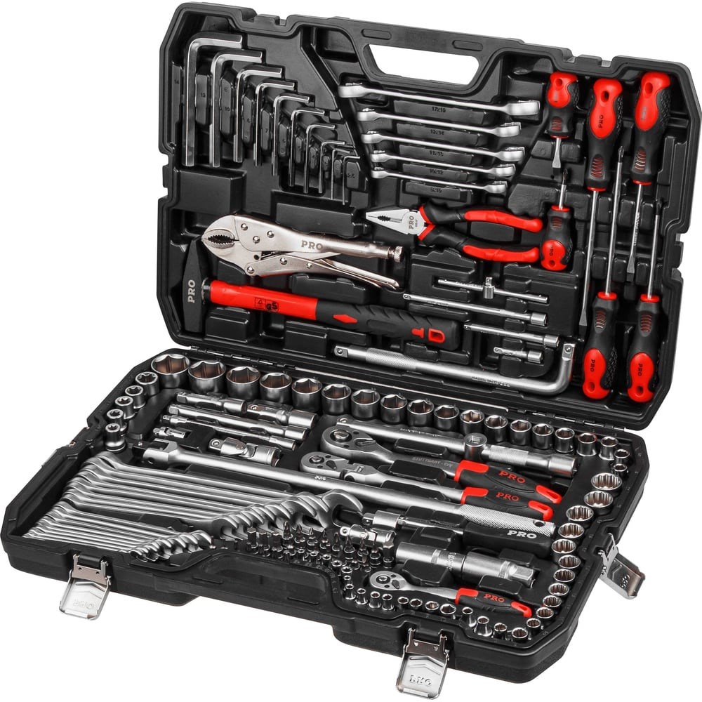 Многофункциональный набор инструментов предназначен для ремонта и обслуживания автомобиля, а также для выполнения других слесарных работ. Рабочие части изготовлены из хромованадиевой стали, устойчивы к коррозии. Финишная обработка головок сатинированием обеспечивает высокую прочность и долговечность. Кейс из прочного противоударного пластика с металлическими замками гарантирует надежное хранение и транспортировку инструментов.