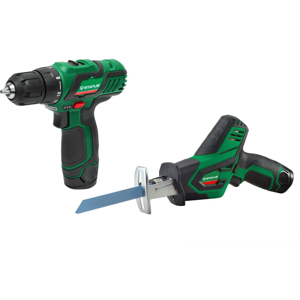 Набор инструментов STATUS 07125601: дрель-шуруповерт CT12-2Li + сабельная пила RS 500 пригодится при выполнении строительных, отделочных, монтажных работ. Дрель-шуруповерт CT12-2Li имеет быстрозажимной патрон, который помогает легко заменить оснастку. С помощью муфты регулировки крутящего момента можно выставить необходимое значение момента затяжки под работу с конкретным материалом. Реверс упрощает извлечение заклинившего сверла и выворачивание крепежа. Эргономичная рукоятка обеспечивает комфортную работу пользователя. Быстрозажимной патрон для простой смены оснастки Встроенная подсветка для работы при плохом освещении Реверс – смена направления вращения для вкручивания/выкручивания крепежа Удобная рукоять для комфортного использования Сабельная пила RS 500 подходит для продольного, поперечного, косого и фигурного пиления различных заготовок. Встроенная подсветка оптимально освещает рабочую зону при эксплуатации инструмента в затемненных помещениях. Благодаря обрезиненной рукоятке достигается надежный хват. Подсветка для лучшей видимости Обрезиненная рукоять для надежного хвата Компактный размер Долгий срок службы