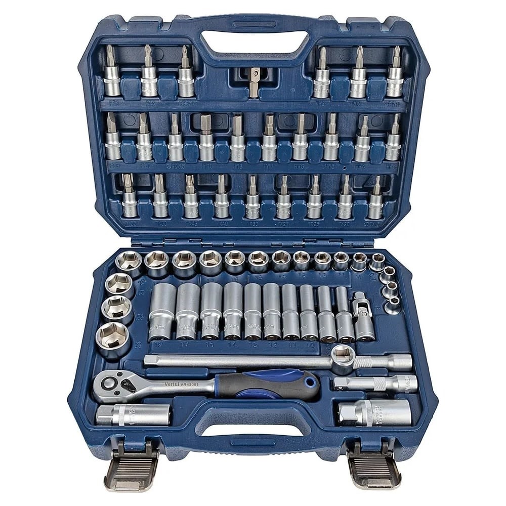 Набор инструментов предназначен для авторемонтных работ на станциях технического обслуживания и в быту. Комплект включает в себя 61 предмет с приводным квадратом 3/8 дюйма, в том числе торцевые головки, биты, трещотка, удлинители, адаптеры и шестигранные ключи. Прочный пластиковый кейс служит для удобного хранения и транспортировки.