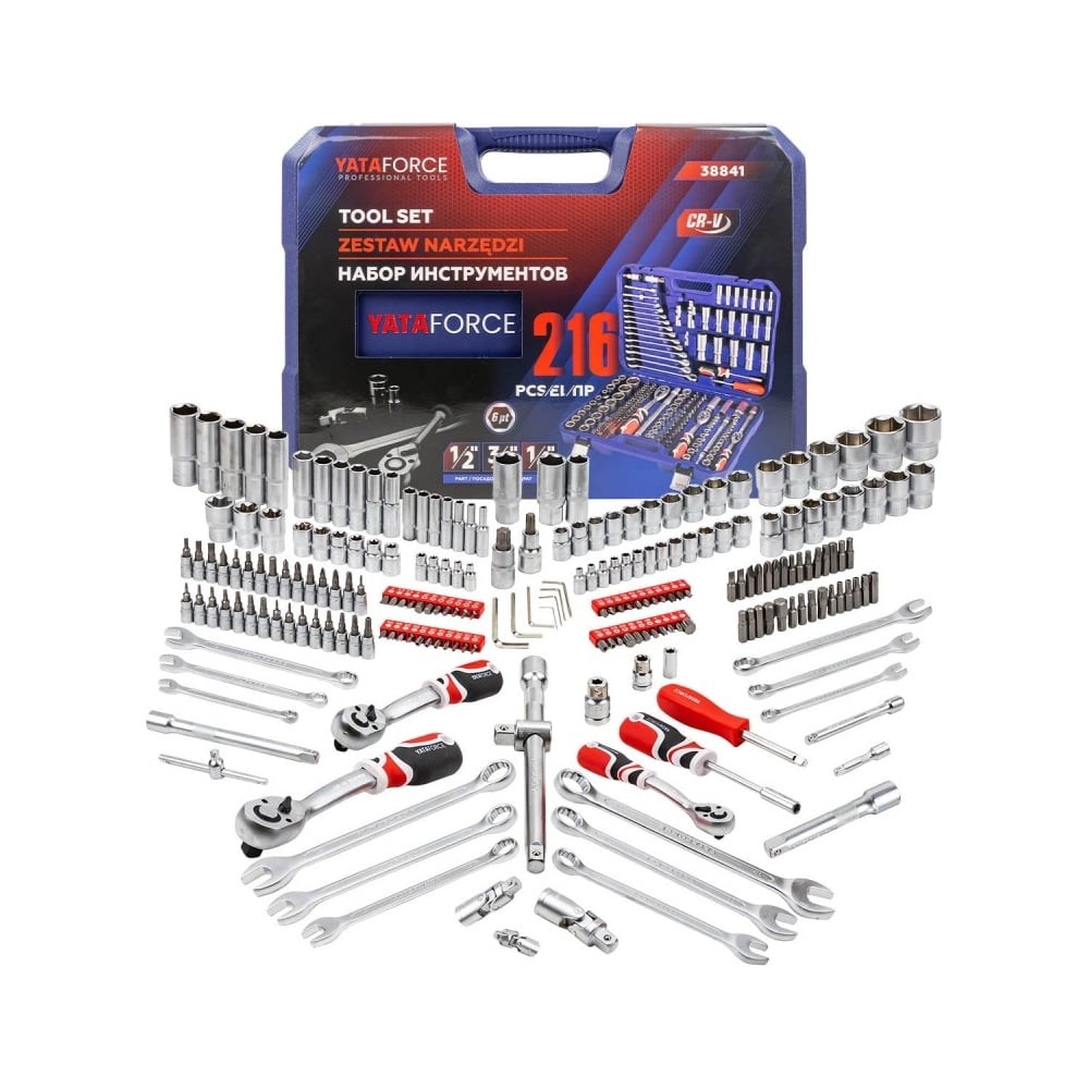 Набор из 216 предметов от бренда YATAFORCE отличается беспрецедентным качеством, надежностью и практически неограниченным сроком службы. Посадочный квадрат: 1/4", 3/8", 1/2". Тип головок: 6-гранные, Е-профиль, короткие, глубокие.Качество изготовления. Инструменты выполнены из высококачественных материалов, что обеспечивает долговечность и надежность.Универсальность. В наборе есть широкий выбор головок, бит и ключей различных размеров, что позволяет использовать его для ремонта многих моделей машин. Трещотка обеспечивает быстрое и легкое изменение направления вращения. Кроме того, этот набор инструментов идеально подходит для использования дома. Будь то небольшой ремонтный проект или крупное строительство, этот комплект поможет быстро и легко завершить любую работу.Компактность. В комплект входит дорожный чемодан, который легко поместится в багажник авто. Обдумывая решение купить набор инструментов для ремонта авто, следует учесть, что он поставляется в качественном пластиком кейсе с надежными металлическими замками и петлями.
