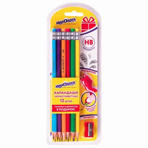 Карандаши легко затачиваются, максимально устойчивы к повреждениям. Изготовлены из дерева высокого качества. Имеют трехгранный эргономичный корпус, оснащены ластиком. Карандаши длиной 190 мм обладают средней степенью твердости – HB.