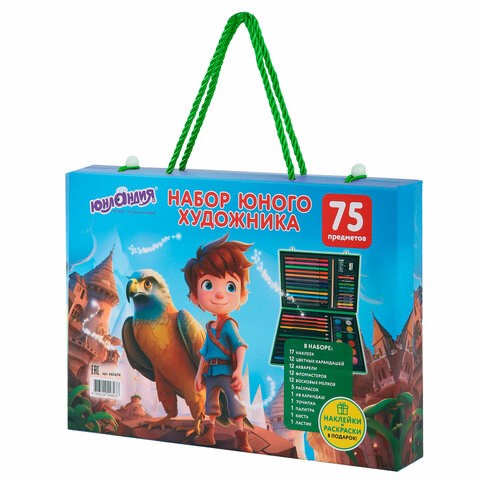 Набор ЮНОГО ХУДОЖНИКА "ОРЕЛ" для рисования и творчества в кейсе ЮНЛАНДИЯ, 75 предметов, 665674