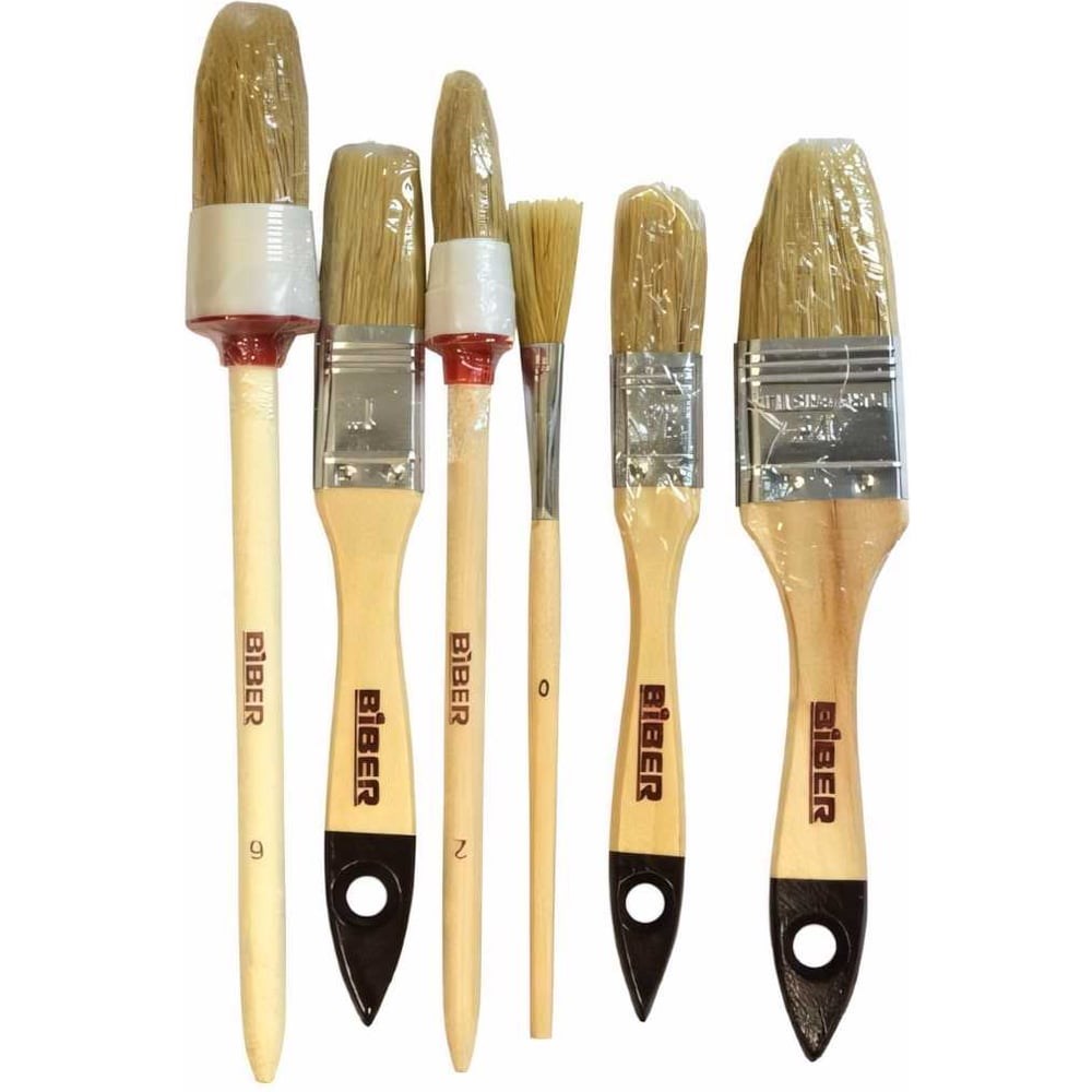 Набор кистей Biber 6шт. натуральная щетина 31403 тов-115036 подойдет для точного и качественного окрашивания. Удобная деревянная рукоятка и разнообразие форм кистей облегчает работу.