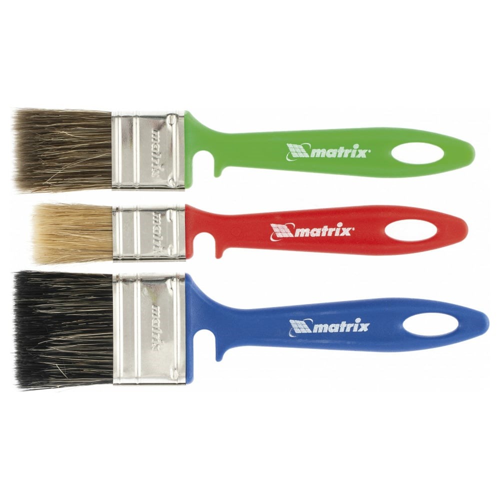 Набор кистей «Универсальный» 25мм, 35мм, 50мм MATRIX Color Line 83399 состоит из трех кистей, которые имеют специальный состав волокон. Идеально подходит для работ по дереву, с ЛКМ на водной основе и эмалью. Каждая кисть имеет специальное углубление на рукоятке для удобного крепления на банку с краской.