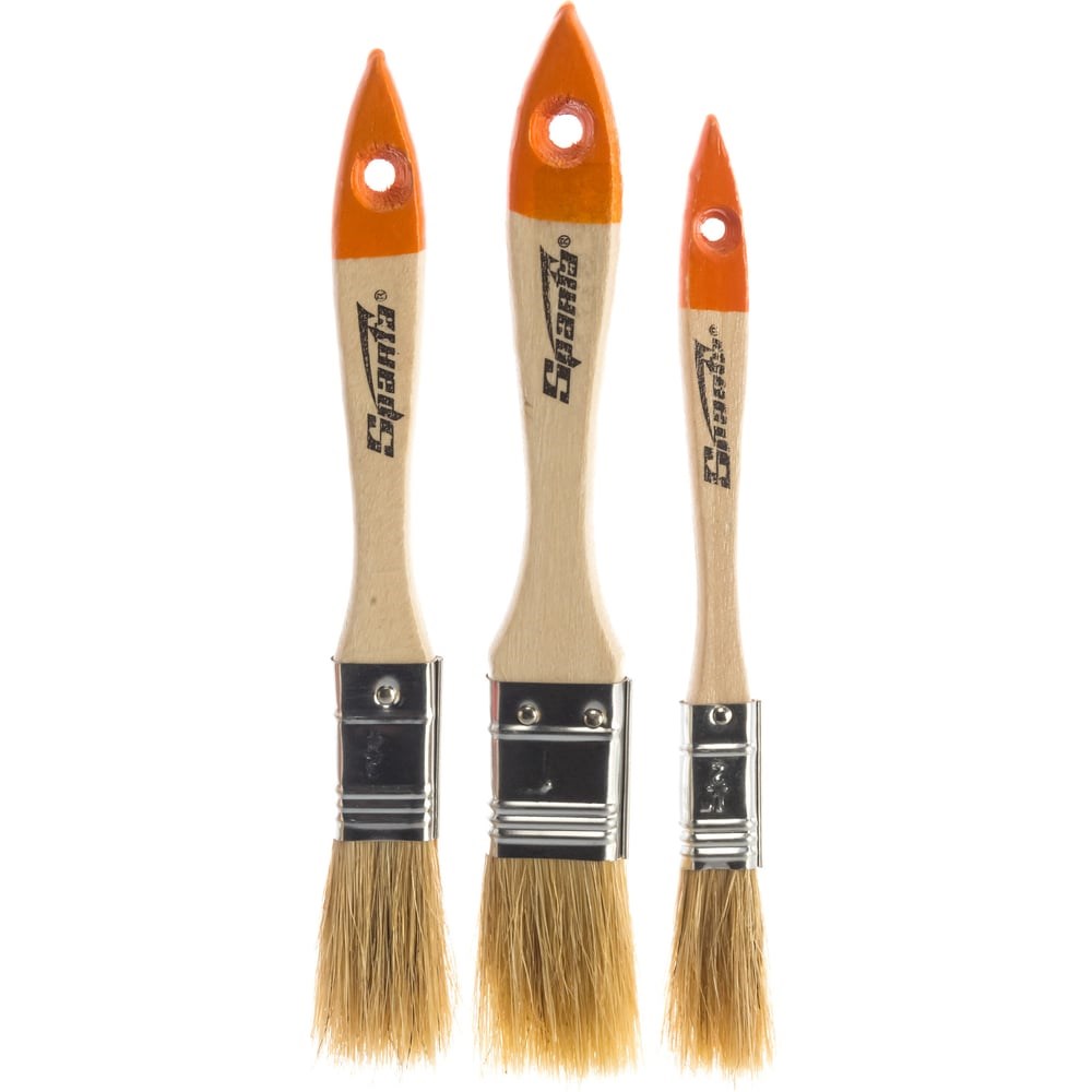 Набор плоских кистей 3 шт SPARTA 841115 предназначен для малярных работ, подходят для нанесения лаков и масляных красок. Данные кисти изготовлены из натуральной светлой щетины. Ручка выполнена из дерева.