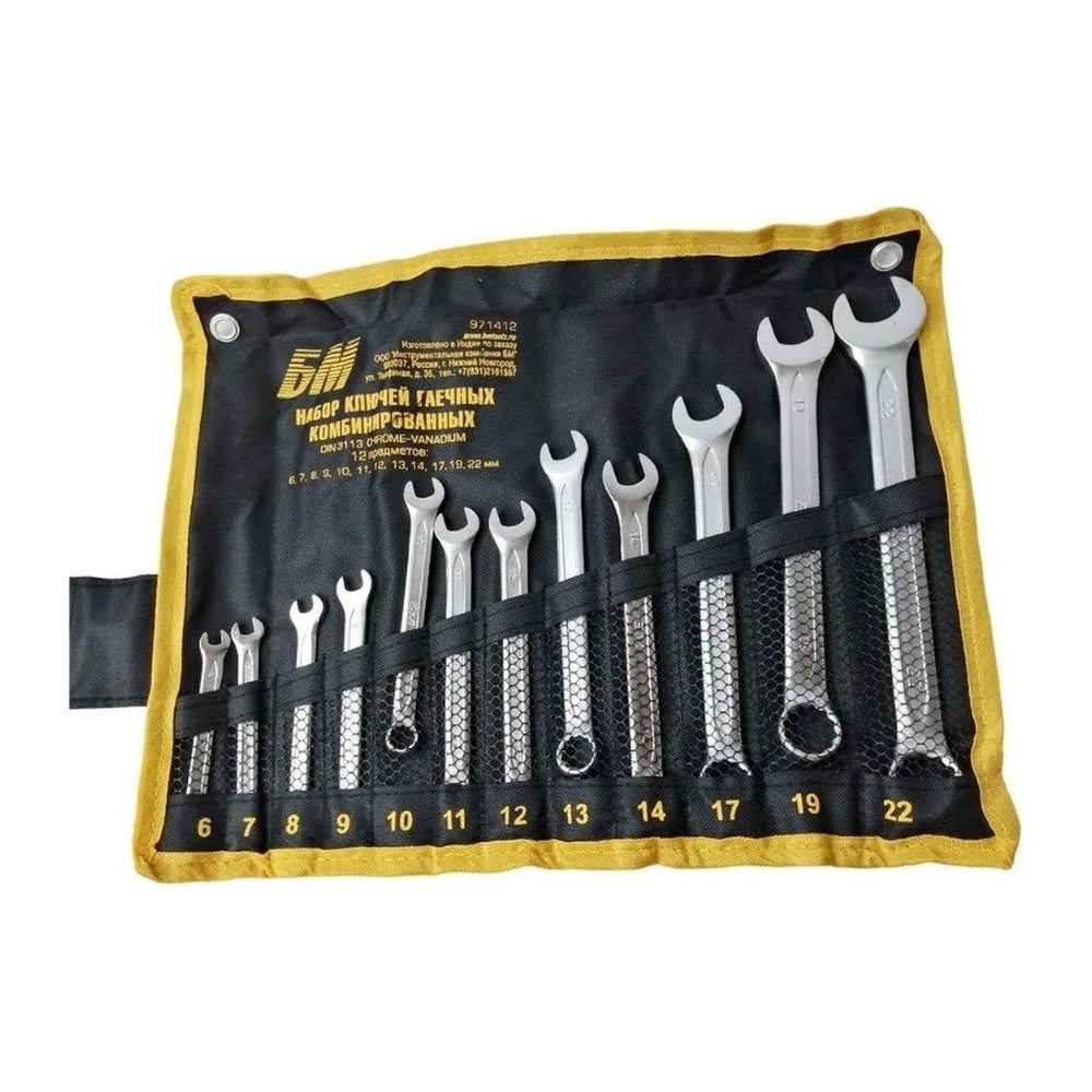 Набор ключей БМ КГК 6-32 мм 22 предмета тетроновая сумка CrV 971422 включает в себя типовые размеры, которые охватывают стандартный крепеж. Инструмент имеет высокую прочность, обладает дополнительной защитой от коррозии. Ключи можно безопасно использовать практически во всех условиях. Наклон головки обеспечивает удобство монтажа в условиях ограниченного пространства.