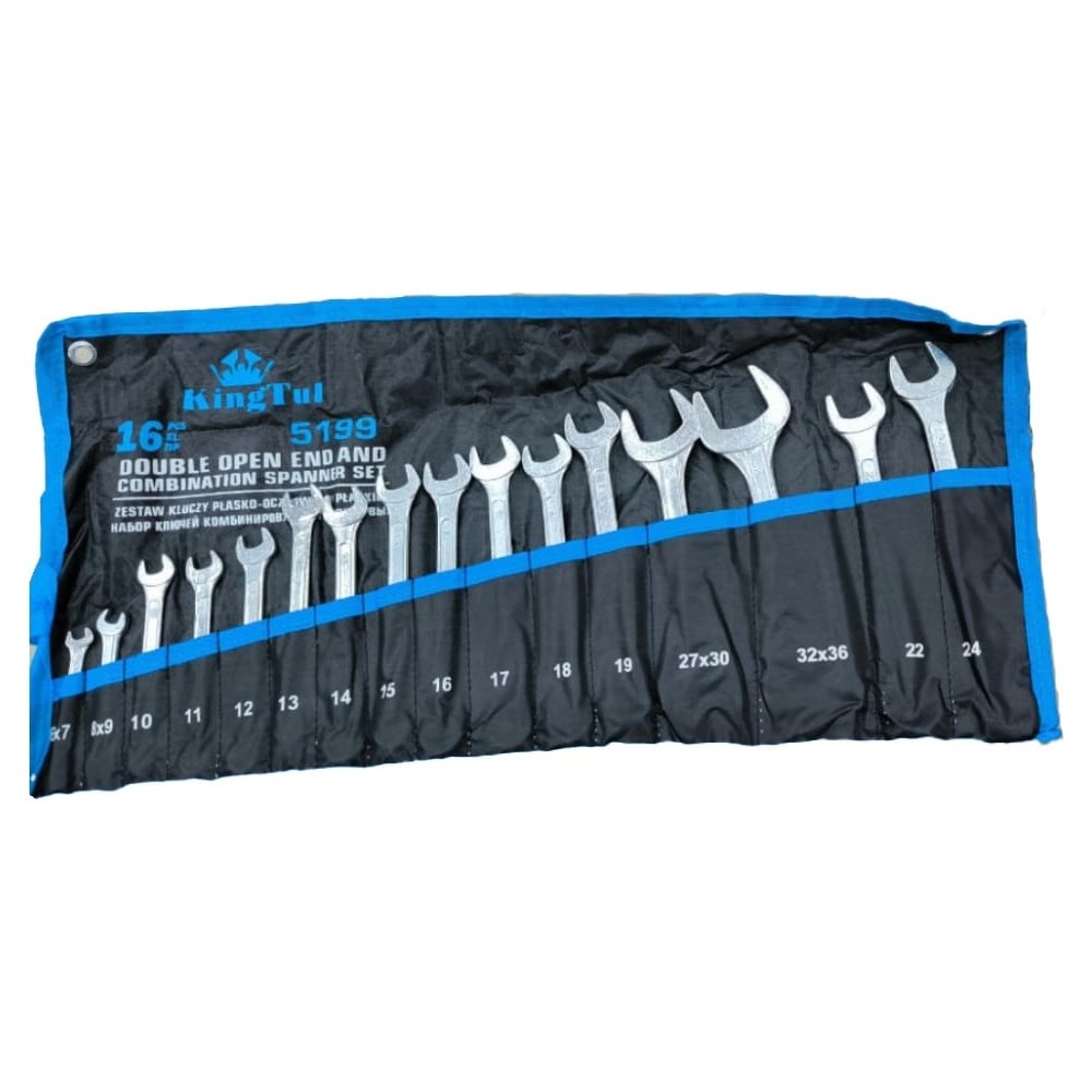 Набор комбинированных и рожковых ключей из 16 предметов от бренда KINGTUL — это универсальный инструмент, который станет незаменимым помощником как для автолюбителей, так и для домашних мастеров.Основные характеристики:Комплектация: Набор включает 16 ключей, каждый из которых сочетает в себе рожковую и накидную сторону, что позволяет эффективно работать с крепежом разных размеров.Размеры ключей:Рожковые ключи: 6x7, 8x9, 27x30, 32x36 мм.Комбинированные ключи: 10, 11, 12, 13, 14, 15, 16, 17, 18, 19, 22, 24 мм.Материал: Изготовлены из высококачественной хромованадиевой стали, что обеспечивает отличную устойчивость к механическим нагрузкам и надежную защиту от коррозии.Компактность: Упаковка набора компактна и удобна, что делает его легким для хранения и транспортировки.Удобство использования: Набор поставляется в пластиковом держателе, который позволяет легко извлекать нужный инструмент и исключает потерю отдельных ключей.Применение: Идеально подходит для работы в труднодоступных местах, что делает его отличным выбором для ремонта легковых и грузовых автомобилей, мототехники, квадроциклов, снегоходов, гидроциклов и садовой техники.Этот набор ключей — отличный выбор для слесарно-монтажных работ с болтовым и гаечным крепежом, обеспечивая надежность и удобство в работе!