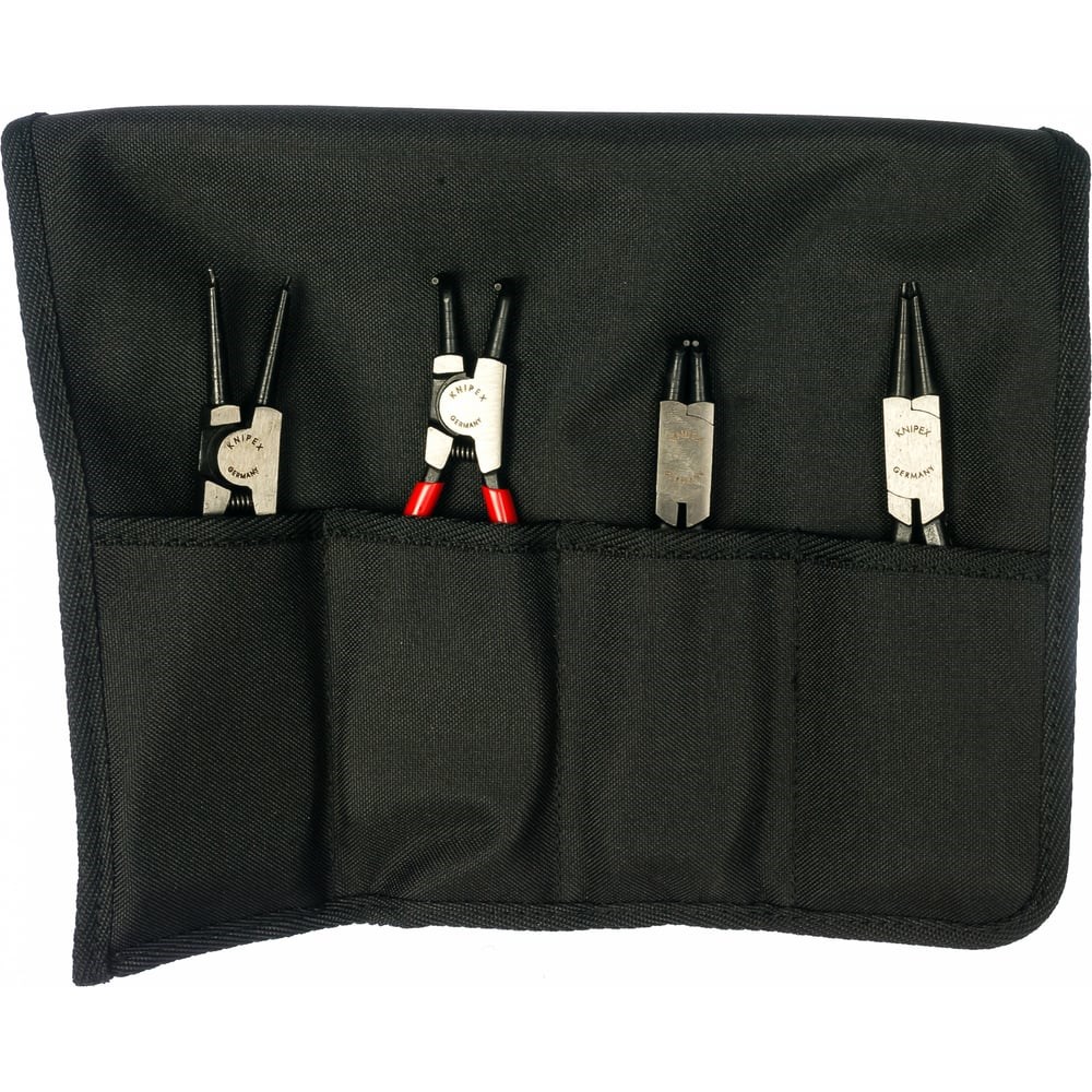 Набор кольцесъемников KNIPEX KN-001956 предназначен для снятия и установки внутренних и внешних стопорных колец. Инструменты изговтовлены из высококачественного материала и имеют антикоррозийную обработку. Рукоятки снабжены пластмассовыми чехлами, предотвращающими скольжение руки во время работы. Планшет из прочного полиэстера защищает щипцы от механических повреждений. Глубокие карманы обеспечивают надежную фиксацию инструментов.