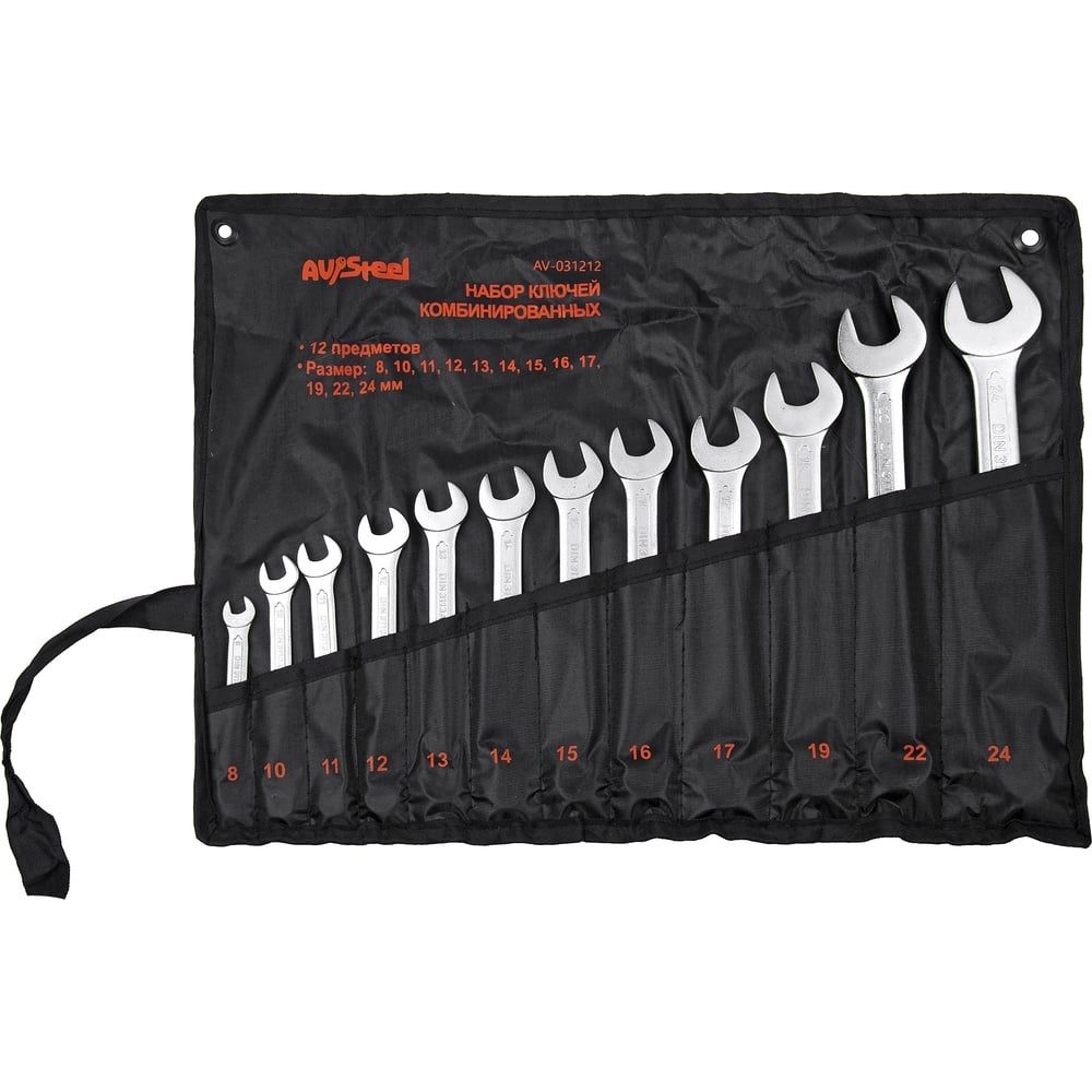 Набор комбинированных ключей AV Steel 8-24 мм, 12 предметов, в сумке AV-031212 предназначен для работ с резьбовыми соединениями. Ключи выполнены из качественной хромованадиевой стали, что обеспечивает прочность и долговечность. Специальное покрытие гарантирует стойкость к износу и защиту от коррозии.Набор поставляется в удобной тканевой сумке для рационального хранения и транспортировки.
