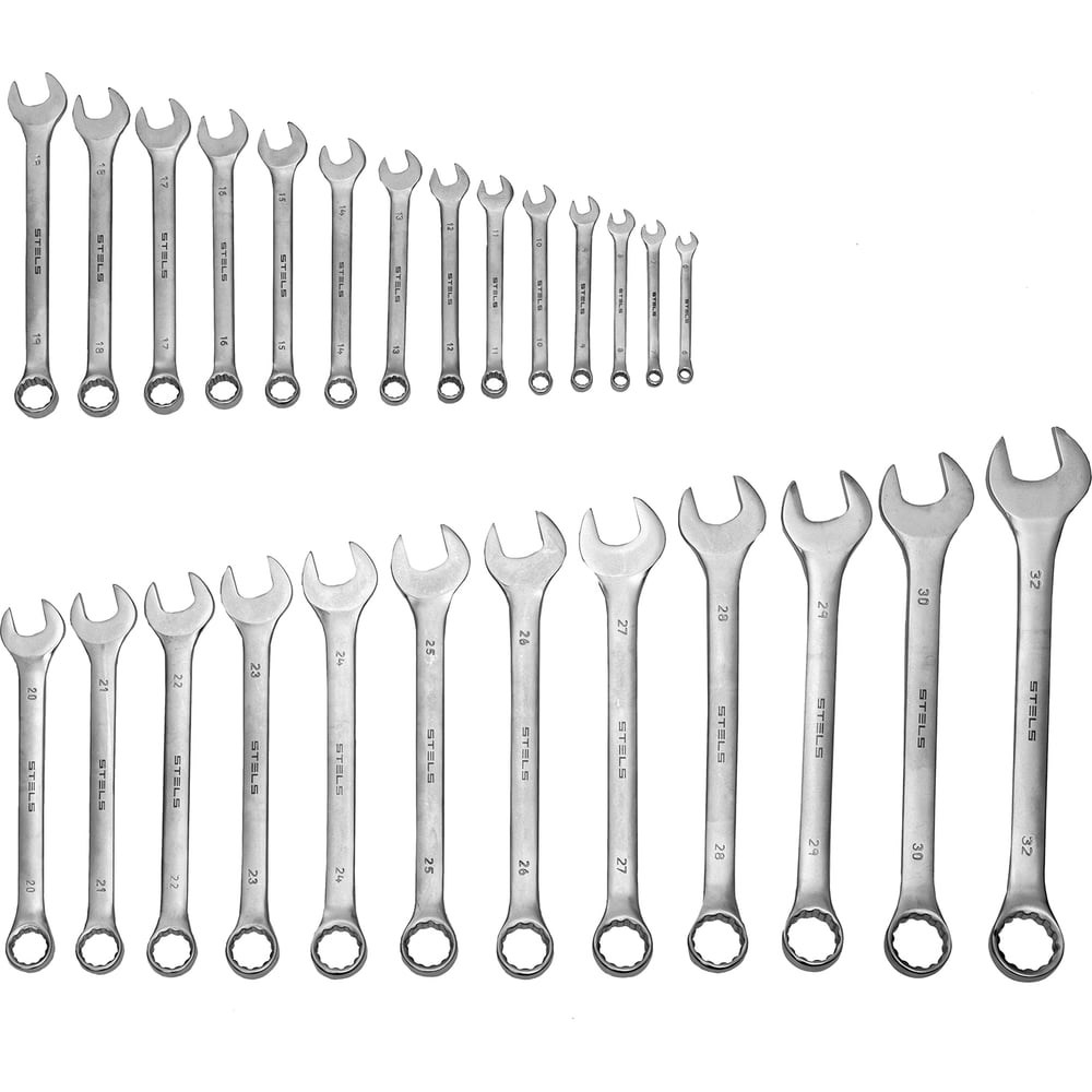 Набор Stels 15431 включает 26 комбинированных ключей из стали CrV, размером от 6 до 32 мм, покрытых матовым хромом, и используется для закручивания и откручивания гаечных и болтовых соединений. Накидная головка каждого ключа имеет 12-гранную внутреннюю поверхность, что облегчает работу с крепежом и уменьшает риск его повреждения. Ключи применяются в слесарных мастерских и автосервисах, а также будут полезны для решения бытовых задач.Изготовлен из хромованадиевой стали. Благодаря этому инструмент имеет высокую прочность и долгий срок службы.Размер чехла в развёрнутом виде - 570мм x 700мм