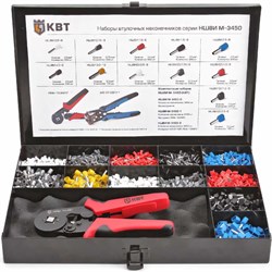 Набор втулочных наконечников НШВИ КВТ М-3450-1 75270 необходим для оконцевания методом опрессовки многожильных медных проводов (одинарных и сдвоенных). Подходит для проводов различного диаметра В комплект входят самые распространенные размеры втулочных наконечников. Сечение наконечников НШВИ - 0,5-6 кв.мм, НШВИ(2) - 2х0,5 - 2х2,5 кв.мм. Удобно определять провода по цвету Каждый размер изделия имеет свой цвет изоляции, что позволяет таким образом маркировать провода. Удобное хранение Металлический кейс оснащен 12 отсеками для хранения наконечников и пресс-клещей. Ручка служит для комфортной транспортировки комплекта.