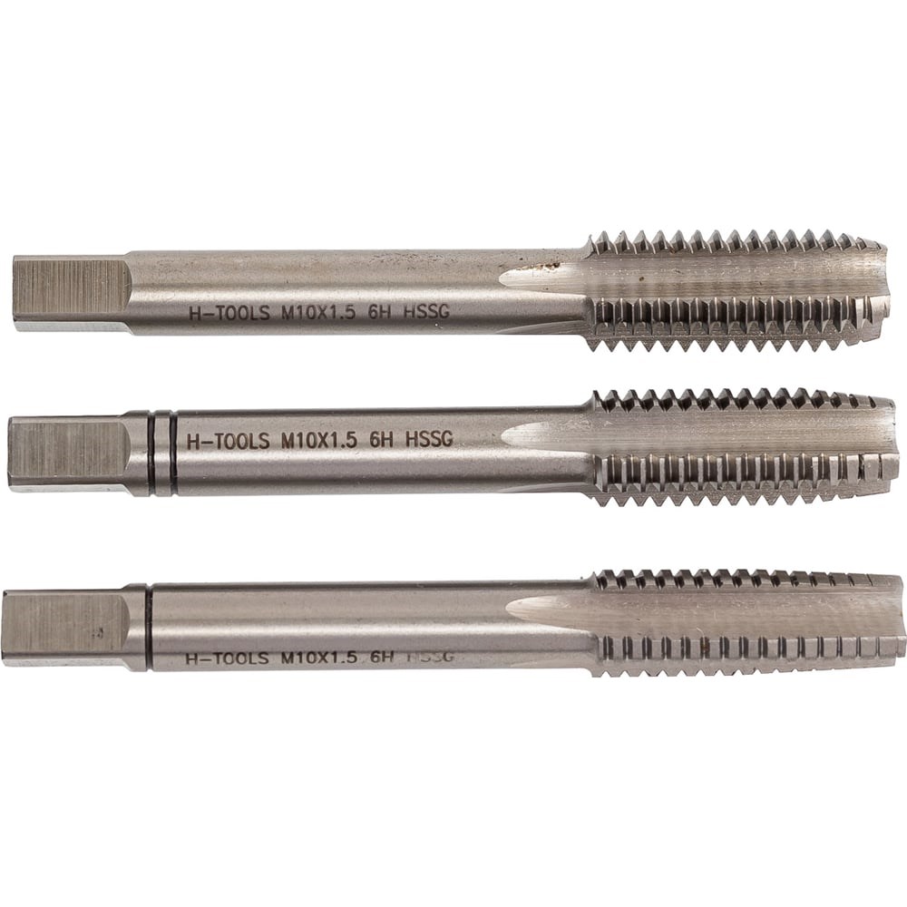 Набор метчиков из 3-х шт. H-Tools предназначен для создания внутренней метрической резьбы с углом профиля 60 градусов в различных материалах. Изготовлен из высококачественной быстрорежущей стали HSS-G, которая гарантирует прочность и износостойкость. Подходит для обработки заготовок, выполненных из легированной стали, чугуна, алюминия, меди, бронзы, цинка, с пределом прочности до 800MPa. Формирование резьбы происходит в 3 этапа: сначала черновым метчиком №1 (6-8 ниток на заход), затем чистовым №2 (4-5 ниток на заход) и финишным (2-3 нитки на заход). Благодаря этому, снижается усилие, прилагаемое к каждому метчику, а получаемая резьба более точная и чистая.