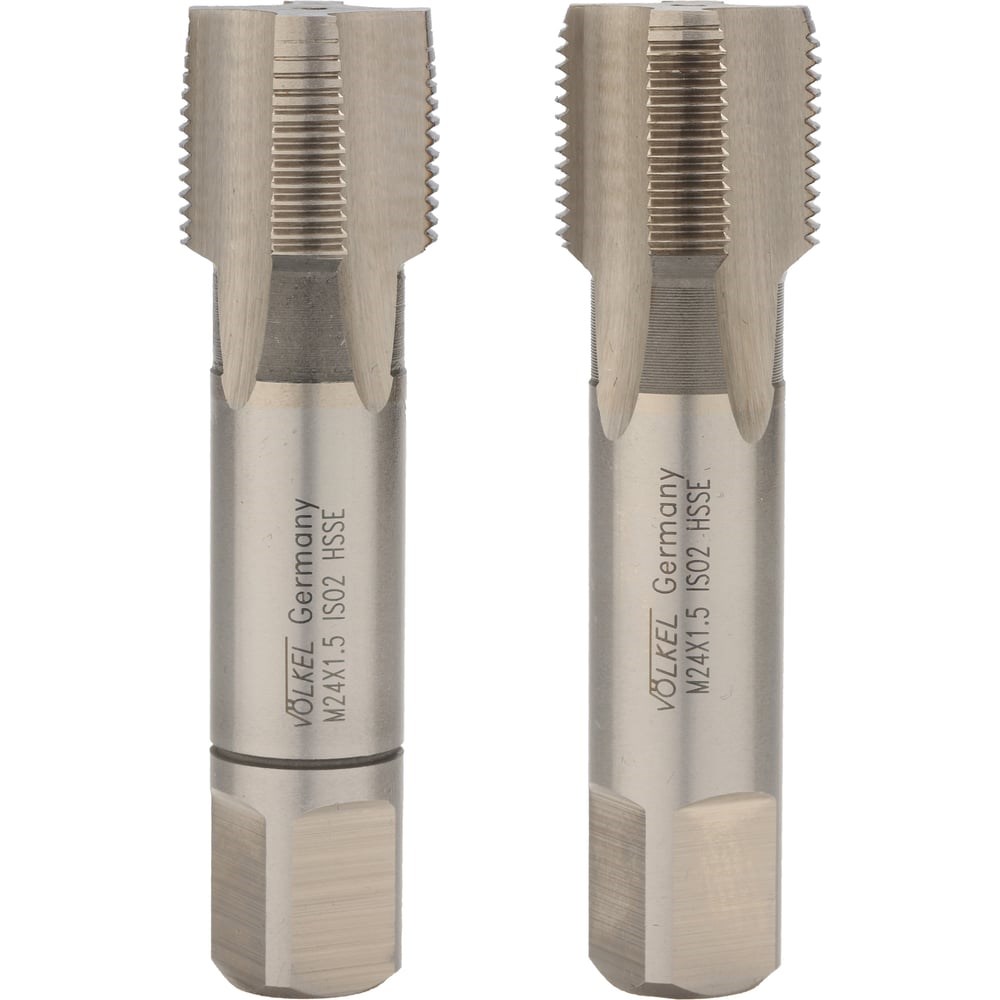 Набор метчиков VOELKEL 2 шт, М 24, шаг 1.5 мм, HSSE DIN2181 V56504 предназначен для создания внутренней резьбы в различных материалах. Изготовлен из высококачественной быстрорежущей стали HSSE, которая гарантирует прочность и износостойкость. Формирование резьбы происходит в 2 этапа, сначала черновым метчиком(№1), затем финишным(№3). Благодаря этому, снижается усилие, прилагаемое к каждому метчику, а получаемая резьба более точная и чистая. Инструмент подходит для обработки заготовок, выполненных из легированной или нержавеющей стали, чугуна, алюминия, меди, бронзы, цинка, с пределом прочности до 1200MPa. Допуск: ISO2 (6h).