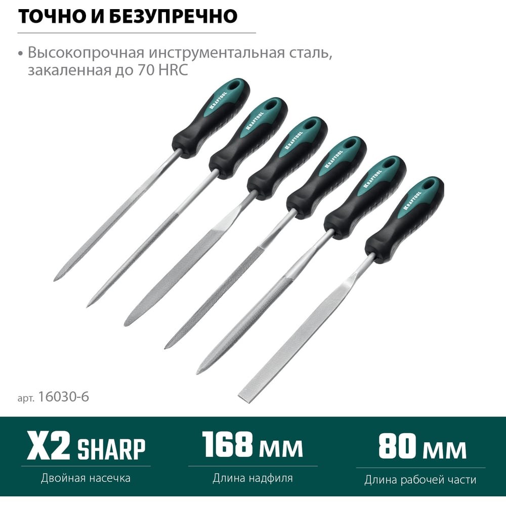 Набор надфилей 6 шт 160 мм, в коробке KRAFTOOL16030-6 предназначен для тонкой обработки металлических поверхностей различной формы, острых кромок и выступов, а также для снятия заусенцев. Высокопрочная инструментальная сталь, закалённая до 70 HRC. Насечка №2 бархатная для точной обработки деталей. Двойная насечка зубьев повышает производительность опиливания металлических заготовок высокой твердости. Эргономичная двухкомпонентная рукоятка обеспечивает надежный захват и комфортную работу. Подходит для широкого спектра сфер применения. Удобная упаковка для компактного хранения.