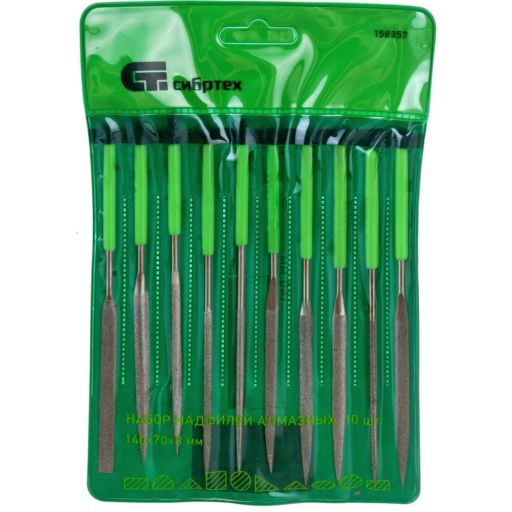 Набор алмазных надфилей предназначен для опиливания твердых поверхностей — стекла, металла, камня, керамики. В комплекте надфили с самыми распространенными профилями, благодаря чему можно обрабатывать плоские детали, пазы, углы, отверстия, сложные грани и рельефные поверхности. Набор будет полезен при проведении слесарных или ремонтно-отделочных работ, пригодится и в быту.