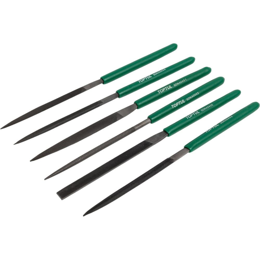 Набор надфилей TOPTUL 6 предметов GNBA0601 отличается высоким качеством обработки. Все модели изготовлены из инструментальной стали. Применяются для тонкой филигранной доработки обрабатываемых поверхностей и профильной обработке мелких узлов и деталей.