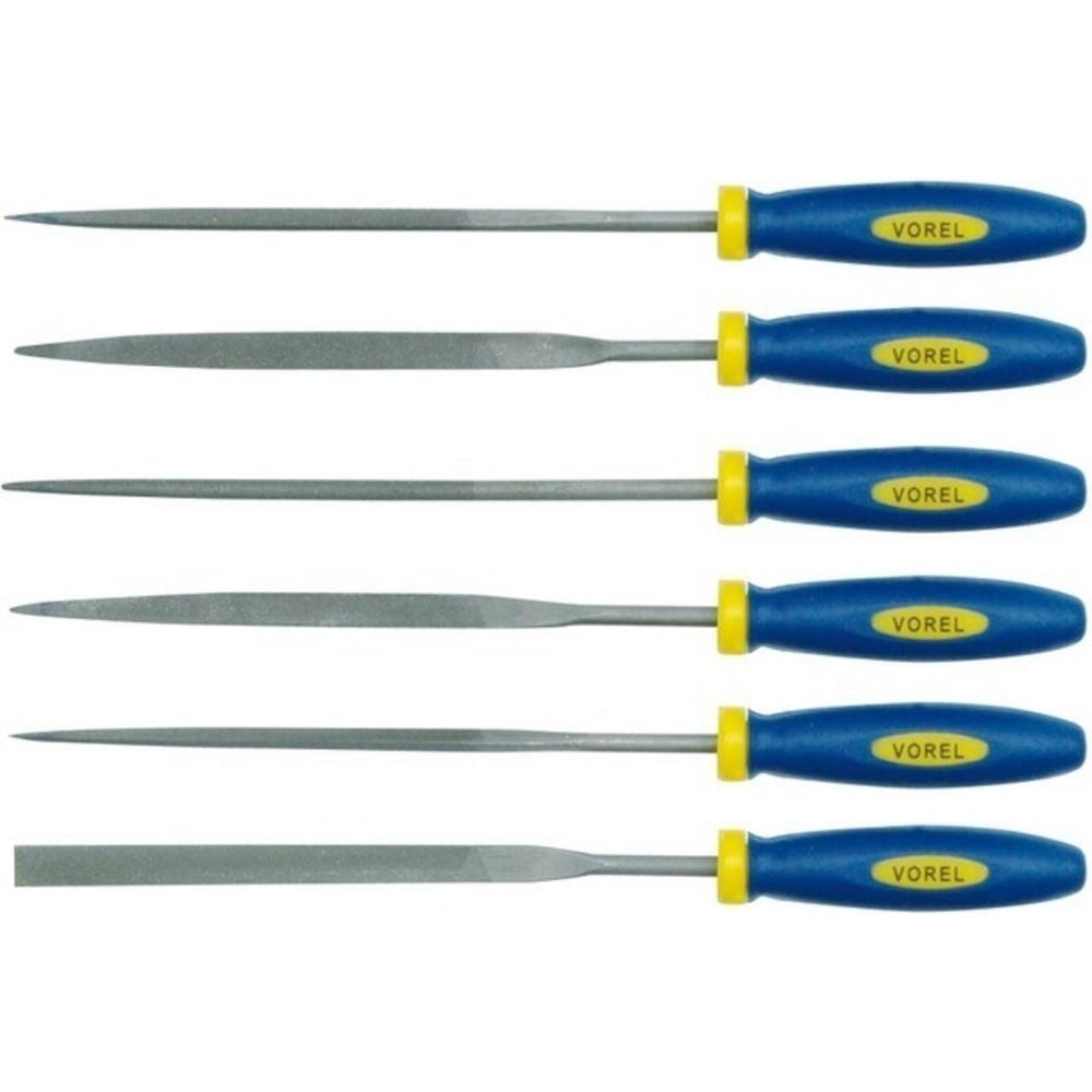 Набор надфилей VOREL 160мм-6шт. 25352 позволяет эффективно обрабатывать небольшие детали. Благодаря разнообразию форм и удобству рукояток комплект подойдет для ювелира, часовщика или электронщика.