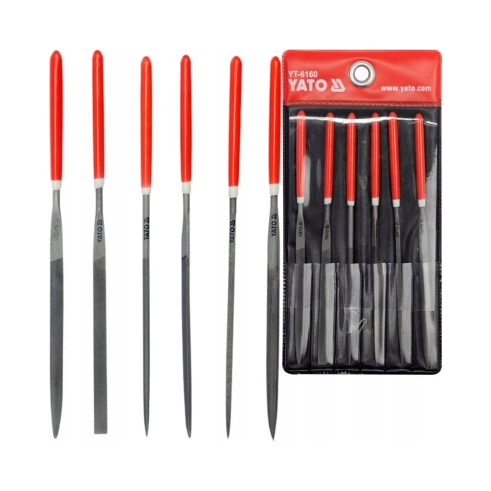 Набор надфилей YATO 140x65мм 6пр YT-6160 предназначен для выполнения мелких слесарных работ с заготовками из особо твердых материалов, таких как: металлы, керамическая плитка, стекло и пр. Инструменты очень удобны в применении, так как оснащены пластиковыми ручками. Надфили изготовлены из высокоуглеродистой стали, профили имеют двойную перекрестную насечку. В набор вошли 6 предметов, по одному надфилю следующих типов: плоский, плоский заостренный, полукруглый, круглый, трехгранный, ножевой.