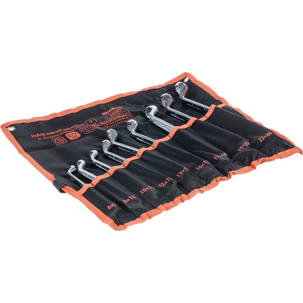 Набор накидных ключей АвтоDело Professional 9 шт. сумка 38091 10446 оптимально подходит для профессионального и бытового использования и применяется для ремонта автомобилей и других технических средств. Характеристики модели: корпус из хромованадиевой стали, заготовленной при пониженной температуре; профили твердостью 39–41 HRC; хромоникелевое покрытие защищает от коррозии; тканевая сумка облегчает транспортировку и хранение. Набор состоит из девяти ключей повышенной прочности, которые устойчивы к максимальной нагрузке. Кольцевая часть Over Drive подходит для работы с любыми разновидностями шестигранного крепежа, в том числе поврежденного.
