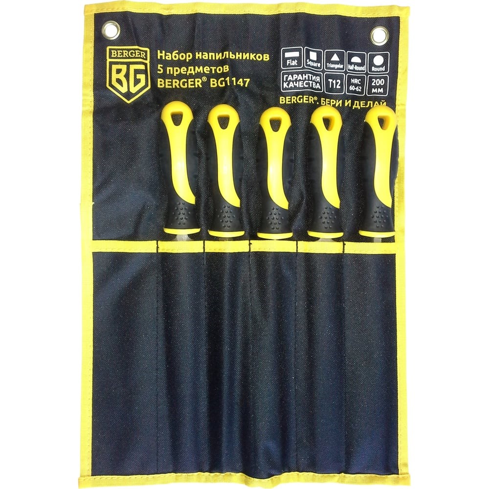 Набор напильников с рукояткой 5 предметов в матерчатом чехле BERGER BG1147это комплект ручных обрабатывающих инструментов, предназначенных для работы по металлу.Изделия изготовлены из высококачественной стали.Оснащены удобными в обхвате ручками из твердого и мягкого пластика.Общая длина напильника 310мм Рабочая длина напильника 200мм Насечка №2 Материал (сталь): T12 Твердость 62HRC