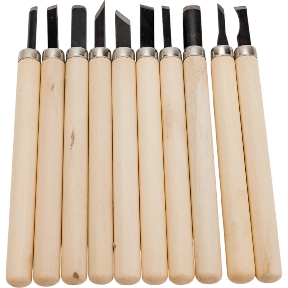 Набор ножей для резьбы по дереву РОКОТ 10 предметов 667-450 включает в себя инструмент с прочными деревянными рукоятками. Для резцов использована специальная сталь. Комплект поставляется в блистере. Нет повторяющихся профилей - это делает набор универсальным.