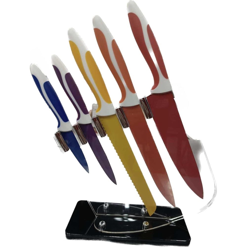 Набор ножей Ladina на подставке 6 предметов 20020-2 предназначен для бытового использования. Острое лезвие позволяет быстро нарезать продукты, что экономит время и силы. Благодаря эргономичной форме ножи удобно лежат в руке. Изделия легко затачиваются, поэтому отличаются практичностью.