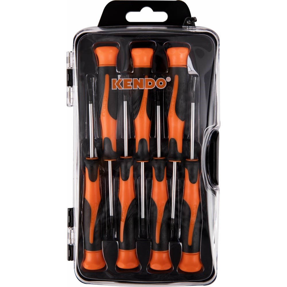 Набор отверток для точных работ KENDO 7 шт 20538 используется для работ с крепежом при проведении ремонта бытовой техники и электроники. Инструмент выполнен из качественной хромованадиевой стали. Материал отличается высокой прочностью и долговечностью. Специальное покрытие обеспечивает защиту от коррозии и стойкость к износу. Эргономичные рукоятки с покрытием из термопластичной резины не скользят в руках, обеспечивая комфортную эксплуатацию.