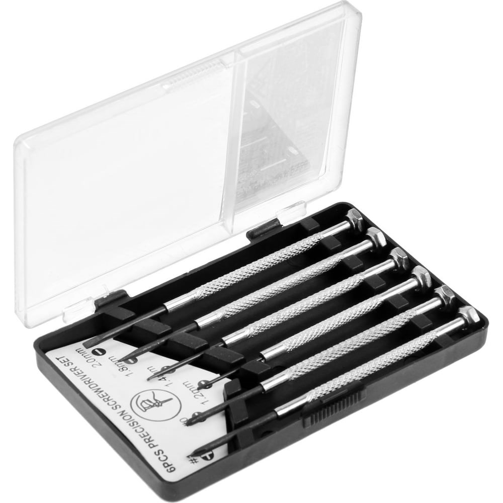 Набор от марки ЛОМ предназначен для точных работ с мелким крепежом. Набор применяется для решения различных ремонтных задач, связанных с домашней техникой. Рукоятки изделий имеют рифлёную поверхность, что не даёт им выскальзывать из рук. Вращающийся упор позволяет быстро крутить отвёртку пальцами. Для удобства хранения и транспортировки предусмотрен пластиковый кейс.