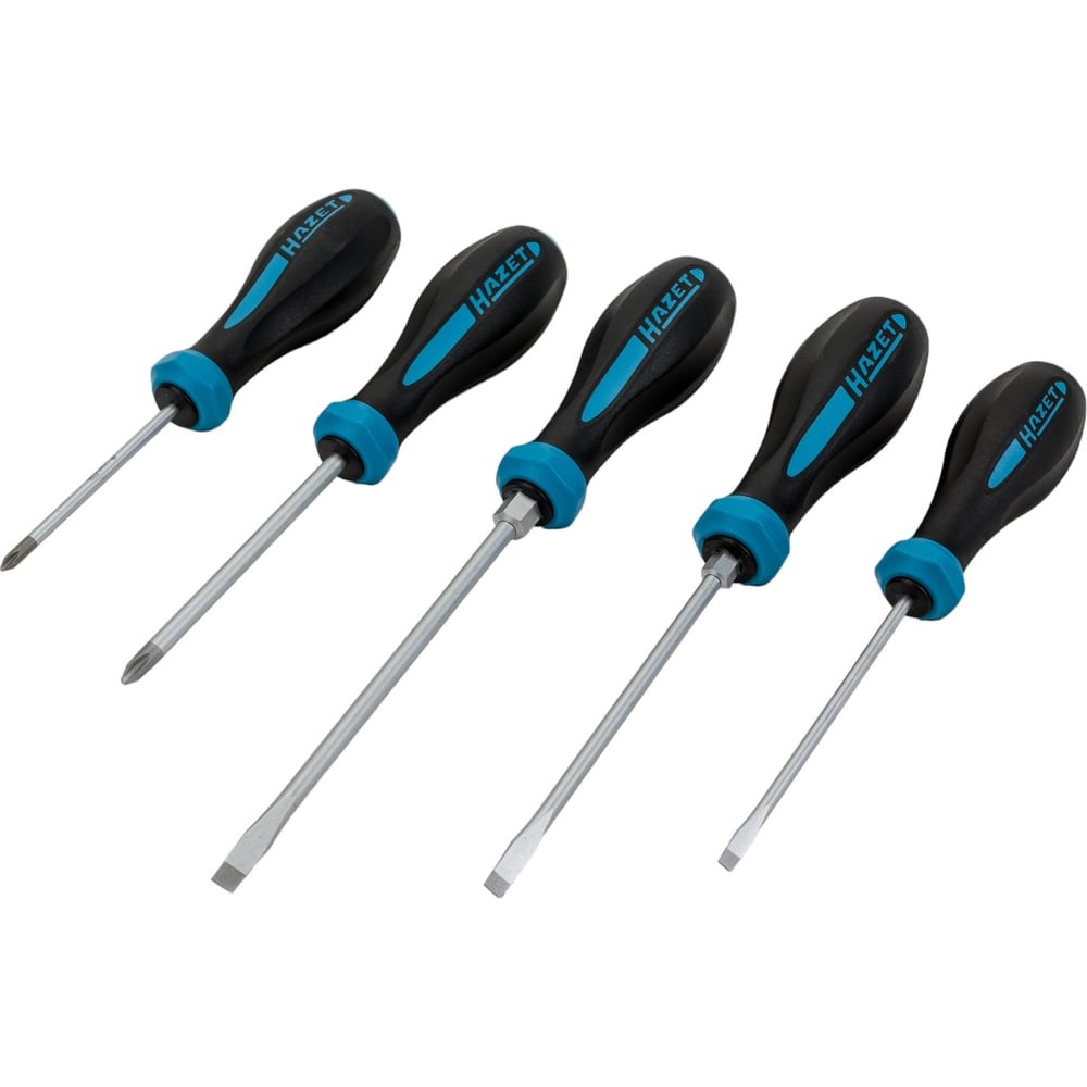 Набор отверток HAZET HEXAnamic 802/5 включает в себя пять отверток: три шлицевых и две крестовых. Форма рукоятей разработана специально под форму ладони, что уменьшает усилие при вращении. Покрытие и неровная поверхность обеспечивают минимальное скольжение руки. Отвертки защищены от коррозии, кислот, бензина.
