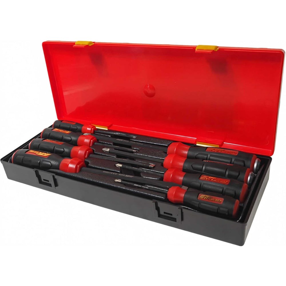 Набор отверток 8шт JTC-K7084 состоит из силовых, ударных ручных инструментов для работы с тяжелонагруженными резьбовыми соединениями. Подходит для винтов с внутренними рабочими профилями в виде плоского шлица Slotted (SL) и креста Phillips (PH).