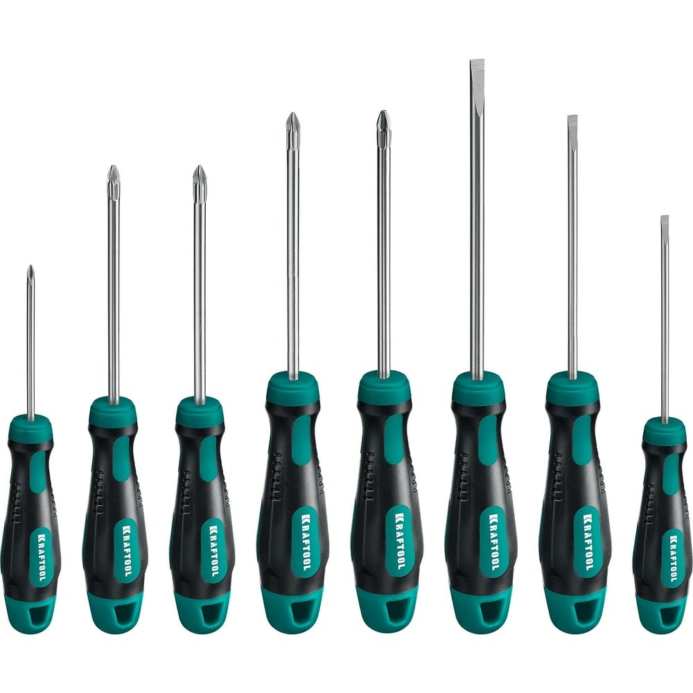 Набор отверток KRAFTOOL Х-Drive-8 8 шт. 250081-H8 - это профессиональные отвертки, изготовленные из высокопрочной Cr-Mo стали. Специальная закалка стержня и система насечек NSS обеспечивают удобство работы и длительный срок службы. Магнитный наконечник надежно держит крепеж и упрощает работу. Противоскользящая поверхность рукоятки служит для работы мокрыми и маслеными руками.