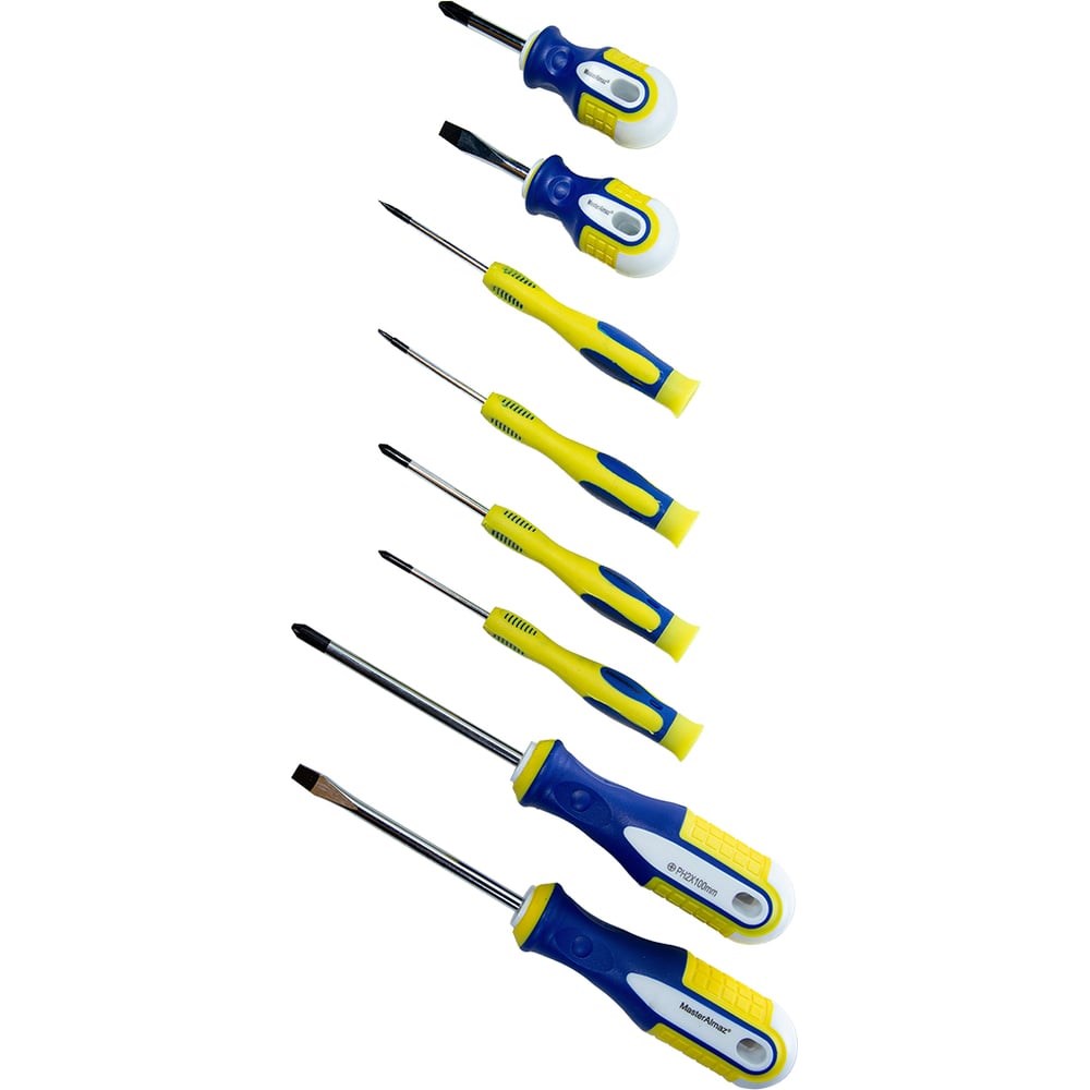 Набор отверток 8 шт. МастерАлмаз 10504017 подходит для эксплуатации в бытовых и профессиональных целях. Отличается долгим сроком службы. Рукоять инструментов выполнена из двухкомпонентного материала, а стержни - из прочной стали. Внимание! Фотография носит иллюстративный характер. Дизайн отверток был изменен, цветовая гамма осталась прежней.