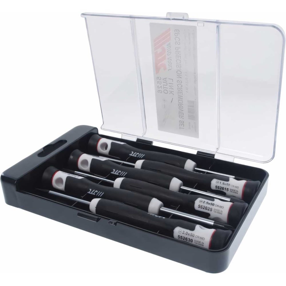 Набор прецизионных отверток 6шт 150мм JTC-5526 представляет собой удобный набор для работы с небольшим крепежом. Отвертки используются для точных операций. Прочный кейс с прозрачной крышкой обеспечивает безопасную транспортировку набора.