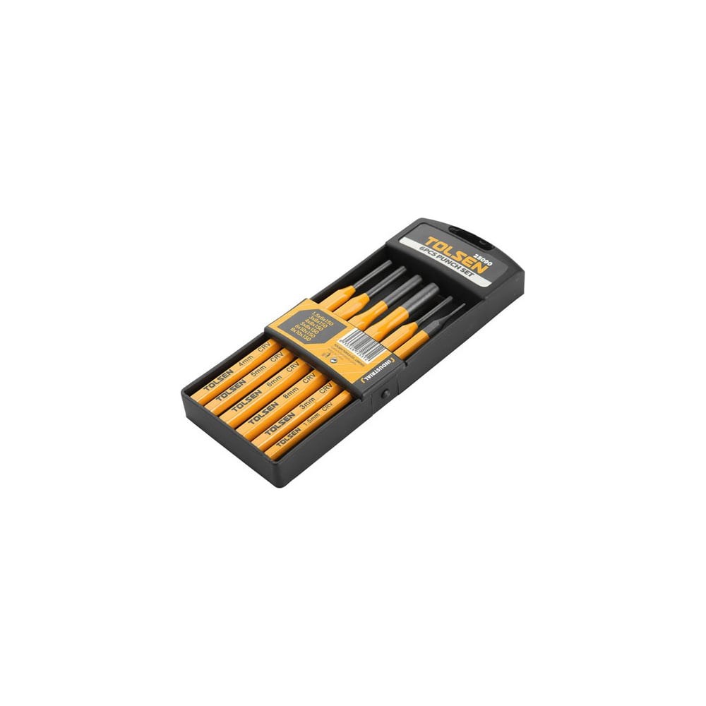 Набор пробойников TOLSEN 6 предметов, в пластиковом кейсе 25090 используется для проделывания отверстий в металле, коже, картоне и других листовых материалах. Инструмент выполнен из качественной хромованадиевой стали твердостью HRC 56-62, что обеспечивает прочность и долговечность. Порошковое покрытие защищает инструмент от коррозии и увеличивает срок службы.