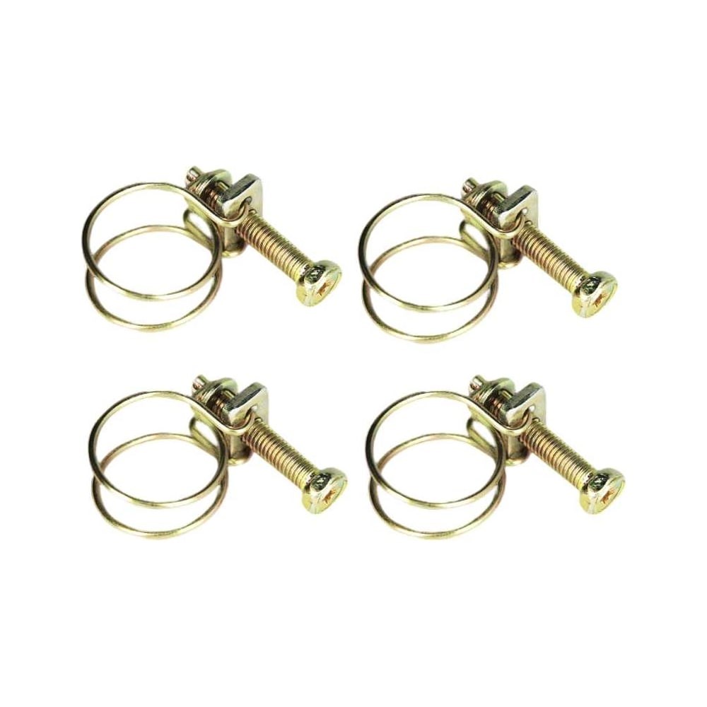 Набор проволочных хомутов MasterProf 3 размера, 6 шт., цинк, 1/2", 3/4", 1" ИС.140915 имеет пружинный механизм, состоящий из двух частей. Одна имеет оцинкованную проволоку из стали, а вторая часть оснащена болтом, который затягивается. Сама затяжка выполняется при закручивании затяжного болта. Именно по этому принципу спираль сдвигается к стороне сужения. Данным хомутом отлично стягивать резиновые шланги и также его можно соединять с металлическими трубками.