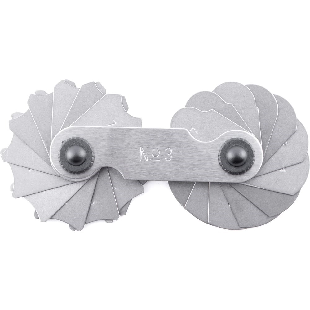 Шаблоны Элитест предназначены для оценки радиусов выпуклых и вогнутых поверхностей. В наборе собраны шаблоны для контроля как наружного, так и внутреннего радиусов.Состав набора № 3 (номинальный радиус шаблонов)— 7,0 мм; — 8,0 мм; — 9,0 мм; — 10,0 мм; — 11,0 мм; — 12,0 мм; — 14,0 мм; — 16,0 мм; — 18,0 мм; — 20,0 мм; — 22,0 мм; — 25,0 мм.