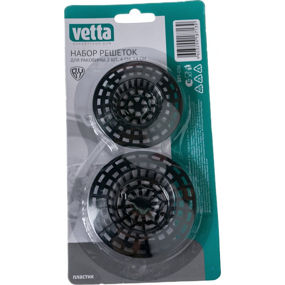 Набор решеток для раковины VETTA 2 шт, пластик, 6 см, 7,4 см BAW6154H 889-036 предназначен для кухни или ванной комнаты. Предотвращает засор стока, поэтому отличается практичностью. Содержит изделия размером 6 см и 7,4 см, за счет чего подходит для отверстий разного диаметра. Благодаря высокой прочности решетки прослужат долгое время.