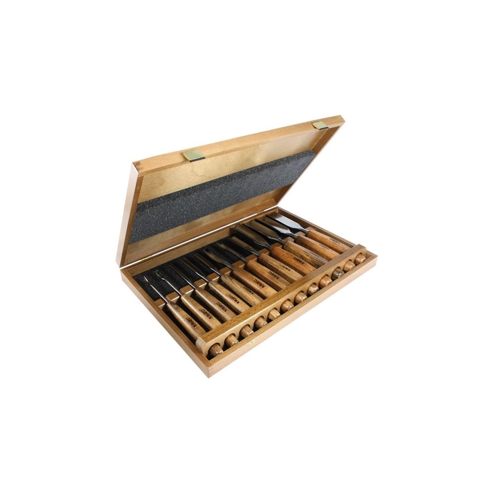 Набор из 12 резцов с деревянной ручкой в коробке NAREX Profi 868100 подходит для эксплуатации в сфере профессиональных резчицких работ по дереву. Изделия отличаются высоким качеством и продолжительным сроком службы. Рабочие части изготовлены из хром-кремниевого сплава и термически обработаны до твердости 59+-1HRc. Лезвия отполированы вручную. Рукоятки выполнены из древесины и имеют удобную для обхвата восьмиугольную форму. Поверхность ручек обработана воском.