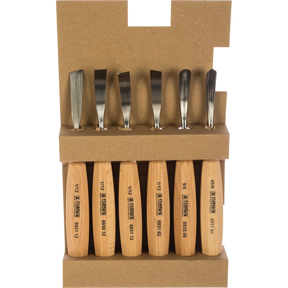 Набор из 6 резцов в картонной коробке NAREX Standart 894710 разработан для резьбы по дереву и в профессиональных, и в любительских целях. Инструменты отличаются высоким качеством и продолжительным сроком службы. Лезвия резцов изготовлены из прочной хромованадиевой стали и подвержены термической обработке до твердости 55 HRc. Рукоятки изделий имеют эргономичную форму, в поперечном сечении представляют собой восьмиугольник. Материалом для изготовления рукояток служит натуральный бук, поверхности промаслены.